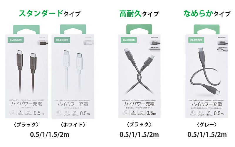 最大240Wで仕事も移動も止めない充電を!USB Power Delivery EPRに対応したUSB Type-Cケーブル 3タイプ全16アイテムを新発売