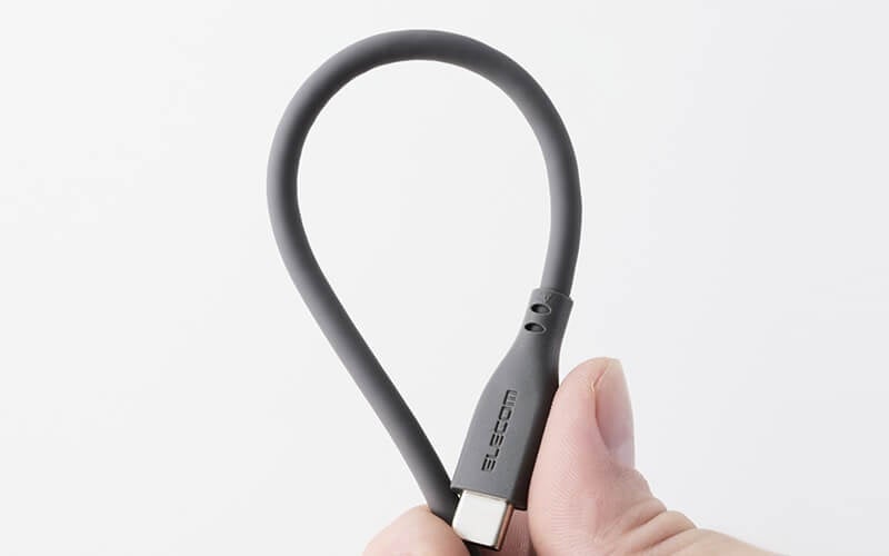 折り癖がつきにくく、高い耐久性を兼ね備えており、束ねても絡みにくく、取り回しやすいケーブルです。