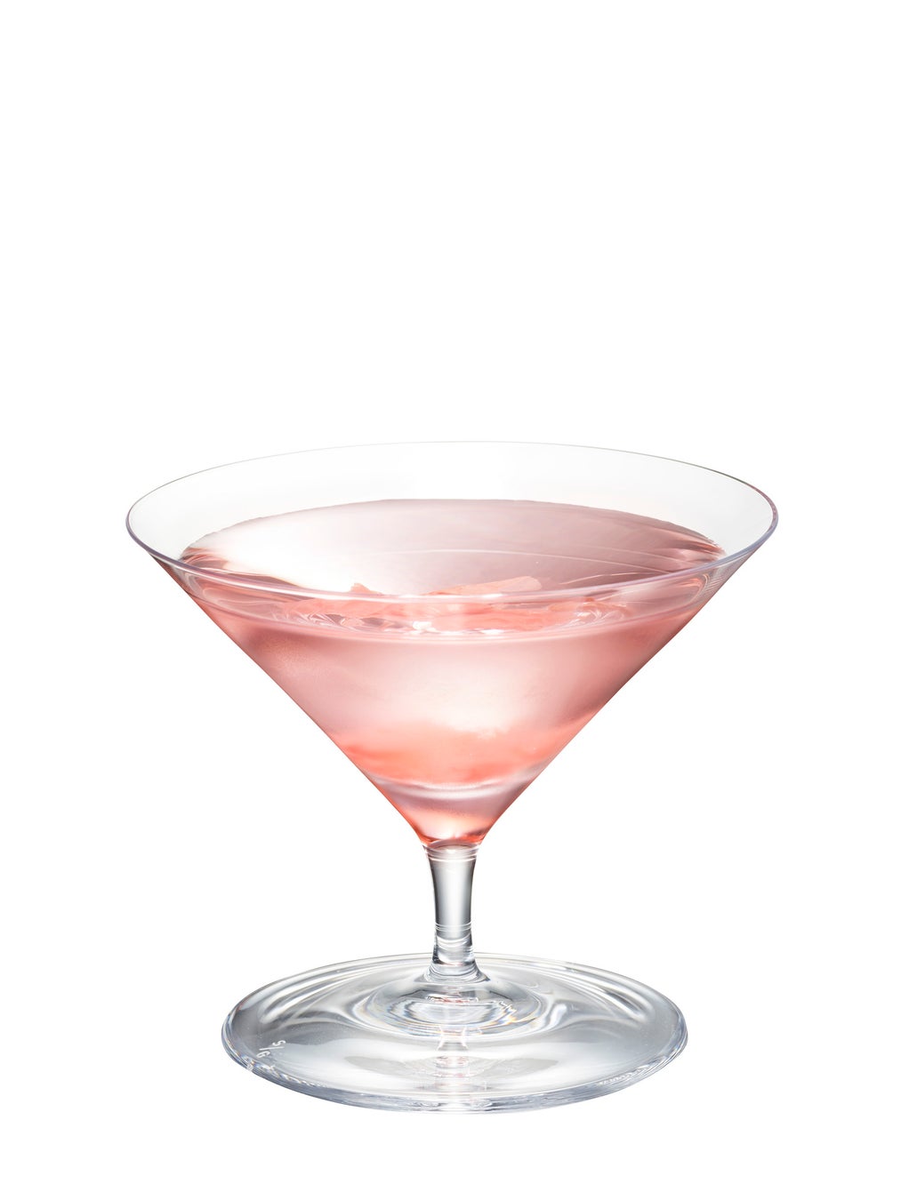 ③細かいストレーナーで濾しながら、冷やしたクーペグラスに注ぐ