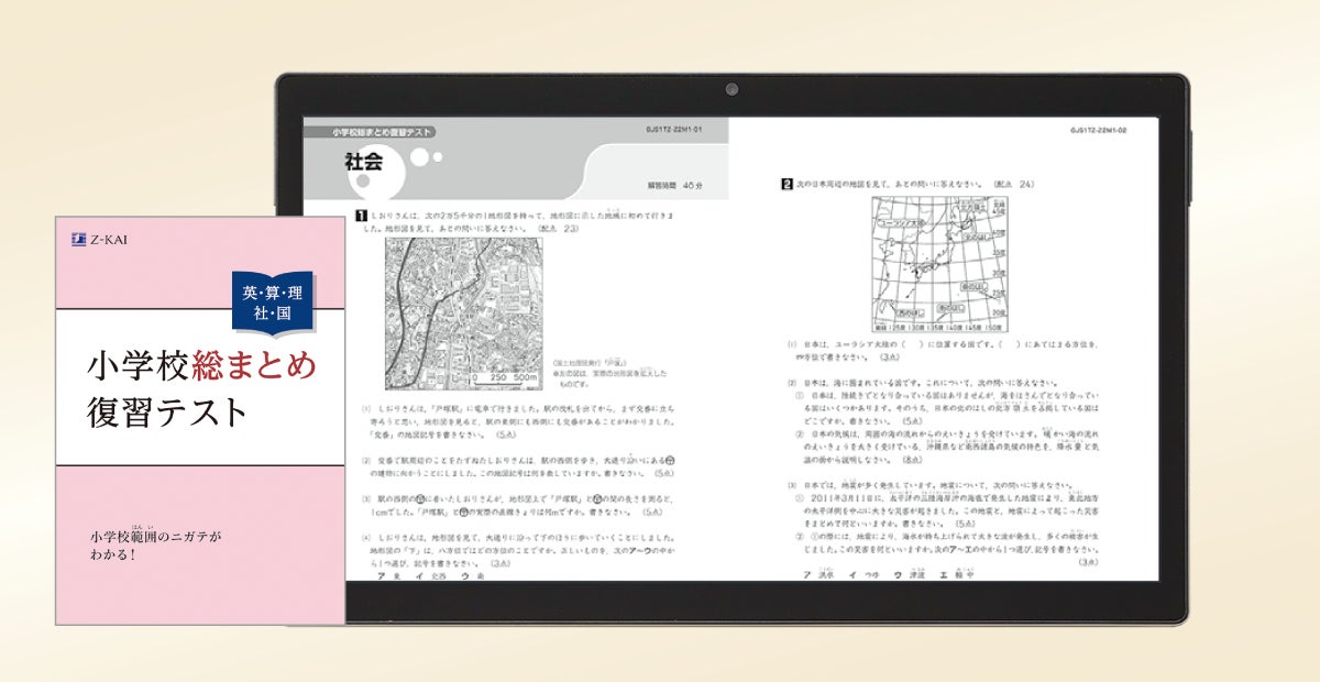 小学校での5教科の内容が身についているかをテスト形式でチェックできるので、今復習しておくべきポイントがわかります。