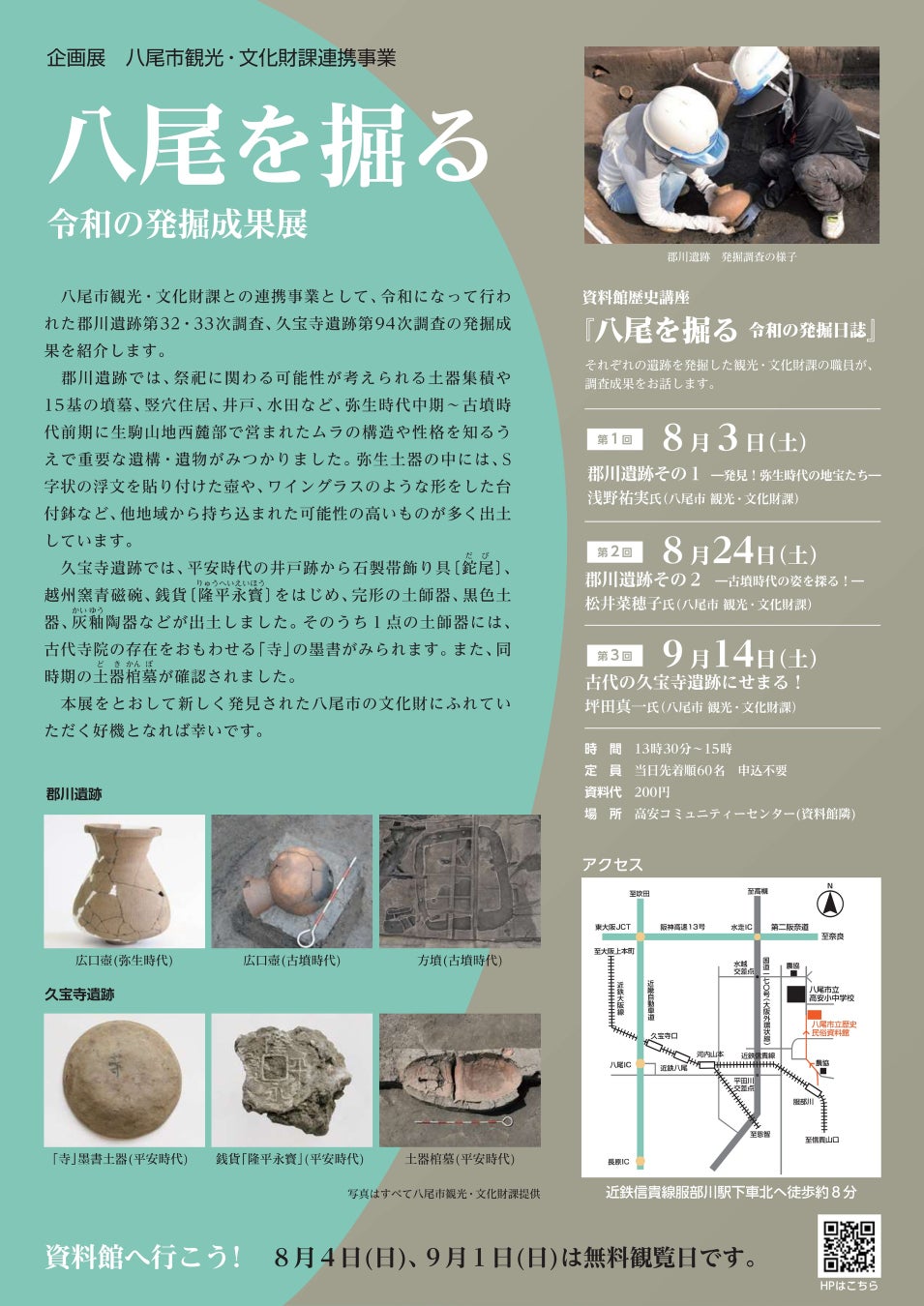 【企画展】 八尾市観光・文化財課連携事業「八尾を掘る 令和の発掘成果展」2024/7/20(土)~2024/9/23(月)まで開催!