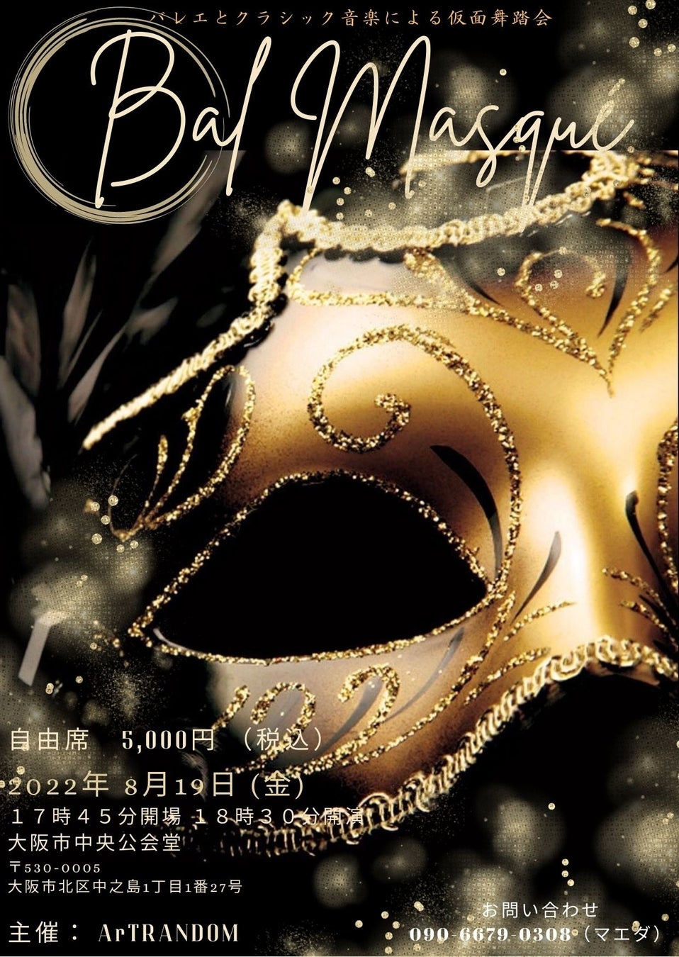 ArTRANDOM(代表:前田哲央)主催、『バレエとクラシック音楽による仮面舞踏会 バル・マスケ』が2022年8月19日 (金)に大阪市中央公会堂 中集会室(大阪府大阪市)にて上演されます。