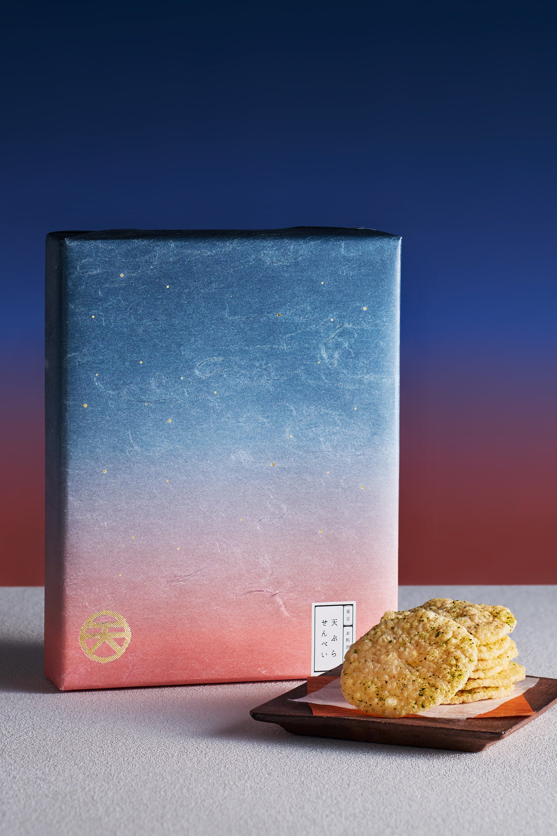 パッケージは、日の出前や日没後の時間帯に見ることができる“マジックアワー”とも呼ばれる、幻想的な空を彷彿とさせるデザインに。雲龍紙で空に浮かぶ雲を、箔を上品に入れることで煌めく星を表現。一つ一つ表情の異なる魅力あふれるパッケージに仕上げました。