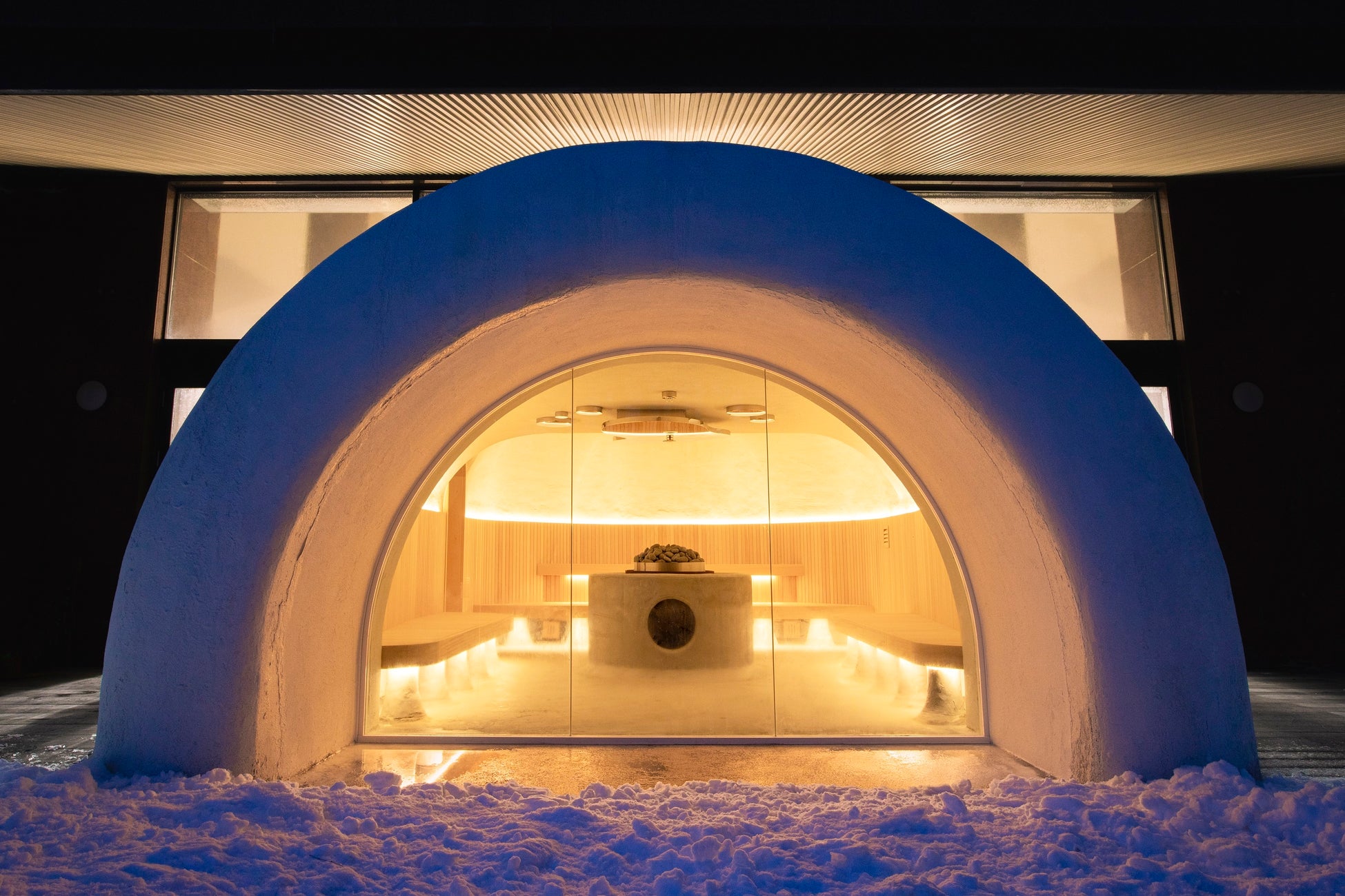 2023年3月に完成オープンした「かまくらサウナ」。お手軽に楽しめるよう、レンタル水着セットの宿泊プランが新登場。