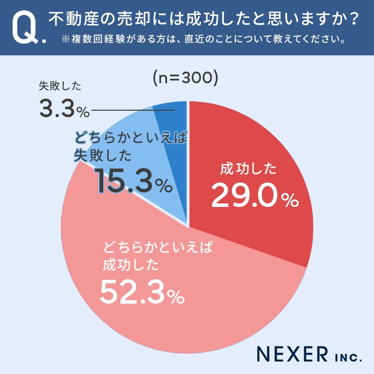 あわせて81.3%と8割以上の方が「不動産売却に成功した」と回答しています。