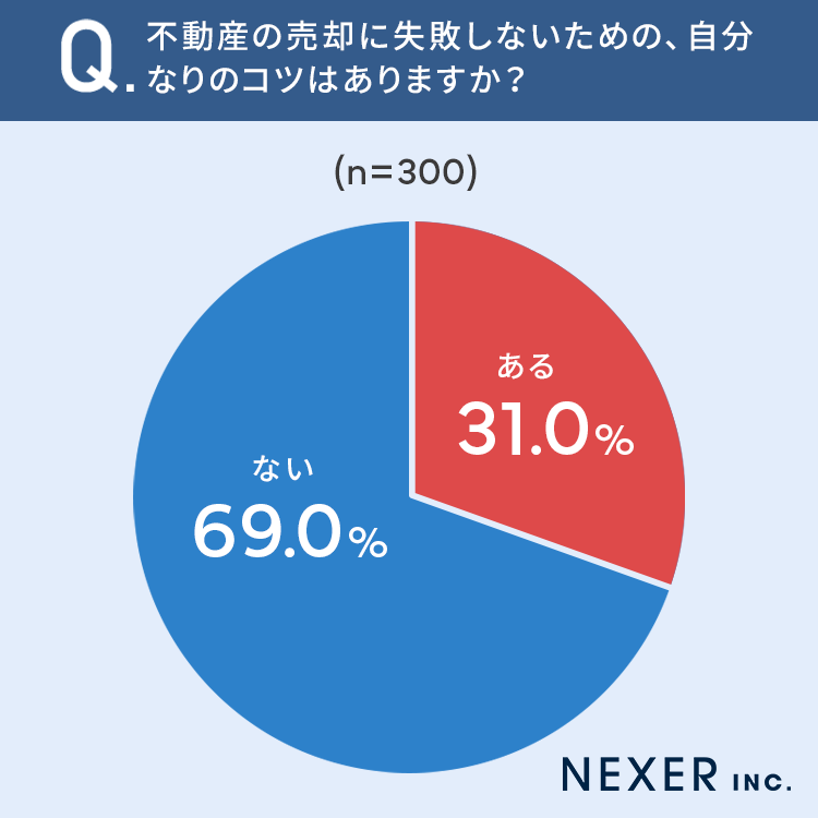 31%と3割以上の方が「不動産の売却に失敗しないための自分なりのコツがある」と回答しています。