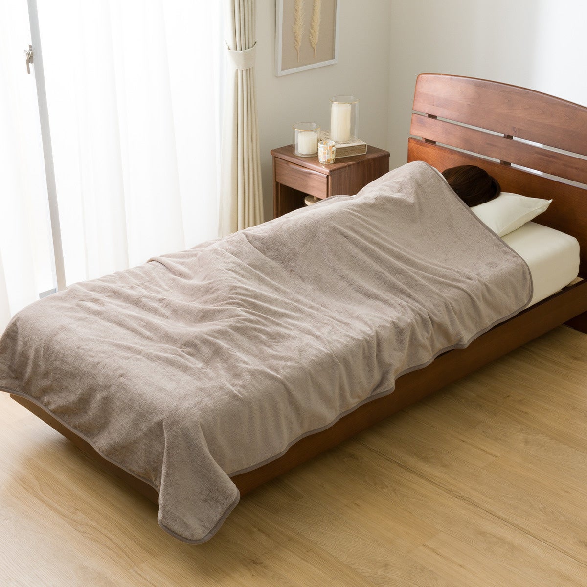 掛け敷きタイプは、1枚で「掛け毛布」としても「敷き毛布」としても使用していただけます。サイズが大きく、掛けた時に全身を包み込むように温めます。敷き毛布として使う場合は、敷きタイプと同様にベッドや布団の上に敷くことができます。