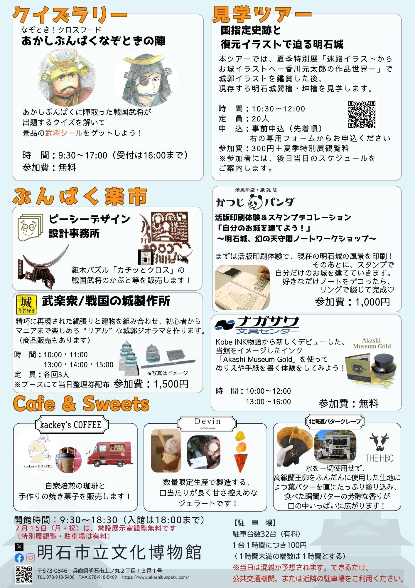 株式会社小学館集英社プロダクションが指定管理者として運営している明石市立文化博物館では、7月15日(月・祝)に、ぶんぱくお城フェスタを実施します。