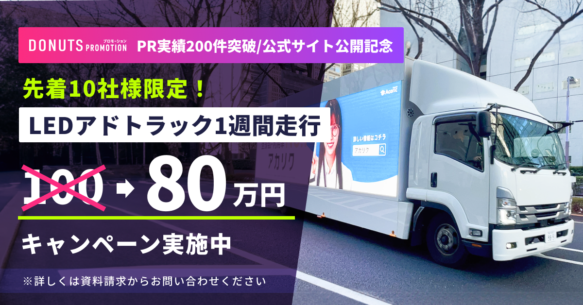 これを記念して先着10社限定で通常100万円のアドトラック走行(1週間)が80万円となる特別キャンペーンを実施いたします。