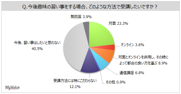 ※本調査の「習い事」は、趣味のものを対象としています。資格取得や試験対策、就職など実益を目的としたものは含みません。