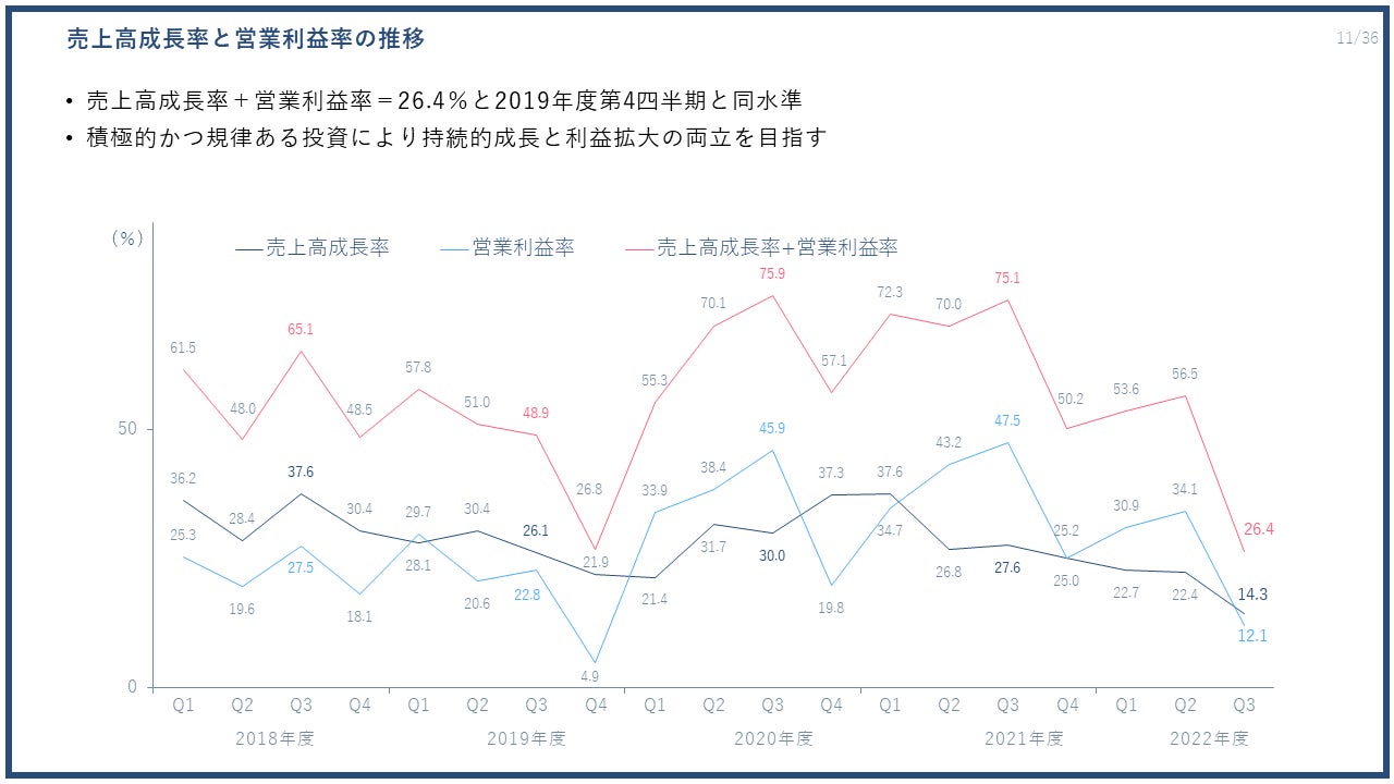 売上高成長率と営業利益率の合計は26.4%と2019年度第4四半期と同水準になっています。