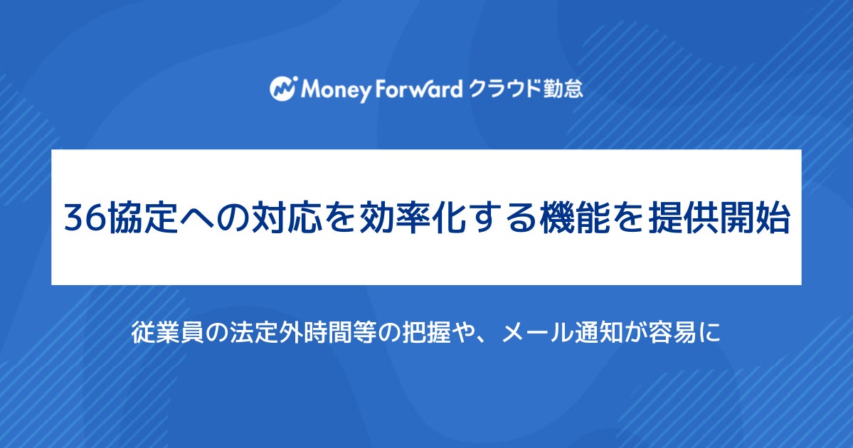 株式会社マネーフォワードは、『マネーフォワード クラウド勤怠』において、36協定への対応を効率化する「法定外・休日労働時間レポート」機能を提供開始しました。これにより、従業員の法定外時間等の把握や、メールでの周知を手間なくできるようになり、人事労務担当者の業務を効率化します。