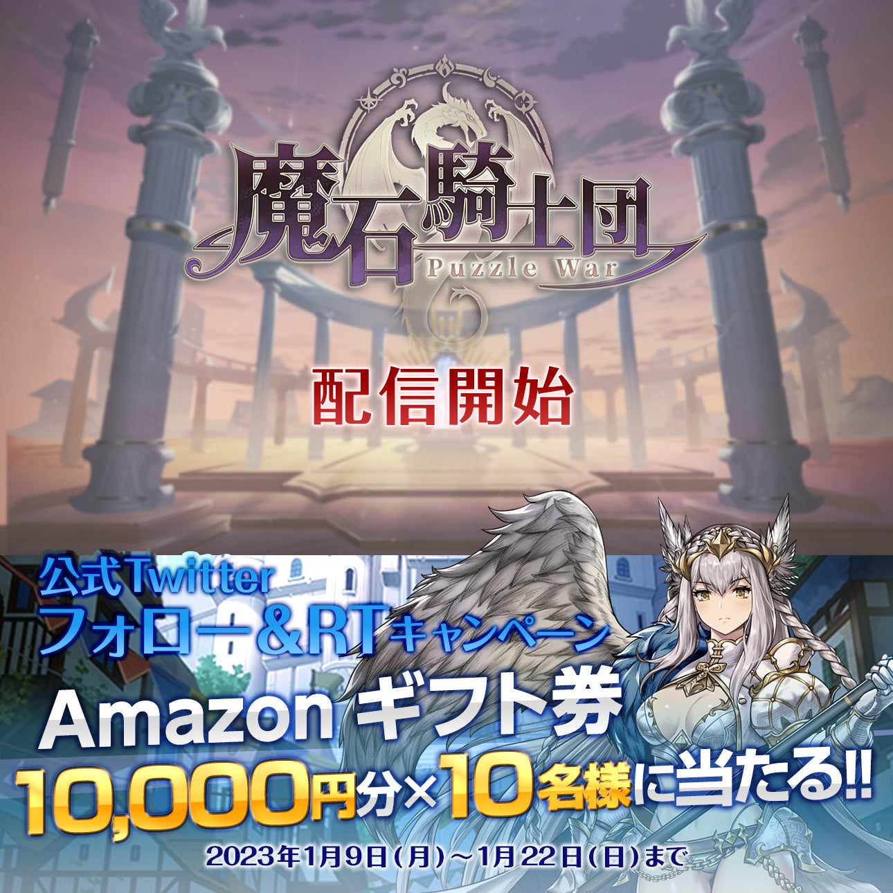 『魔石騎士団』の公式Twitterをフォローし、配信記念の専用ツイートをリツイートいただいた方から抽選で、10名様に10,000円相当のギフトカードを差し上げます。