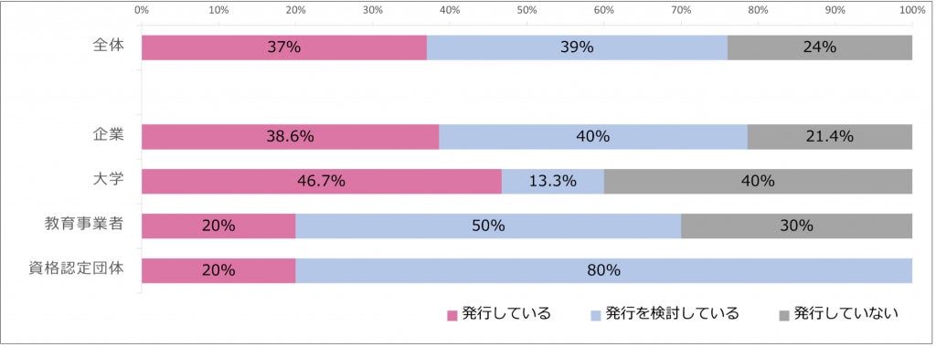 ・約4割がデジタルバッジを発行、用途は「コース修了証」「資格認定証」「スキル証明書」など