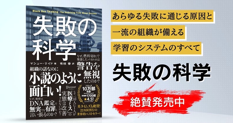 本書では、オックスフォード大を首席で卒業した異才のジャーナリストが、医療業界、航空業界、グローバル企業、プロスポーツチームなど、あらゆる業界の事例とともに、あらゆる失敗に通じる「原因」と、一流の組織が備えている「学習システム」を紹介していきます。