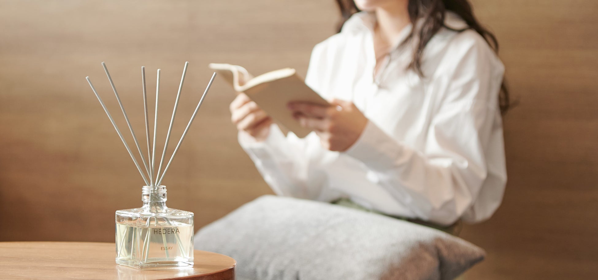 「エッセイ」は思ったこと、感じたことを思うまま書き記した文章のこと。また、その語源は「試み」の意味を持ちます。『HEDERA』初の雑貨への「試み」である香りを、まるで気取りない「エッセイ」を読むような気軽な気持ちで楽しんでいただきたいという想いを込めました。