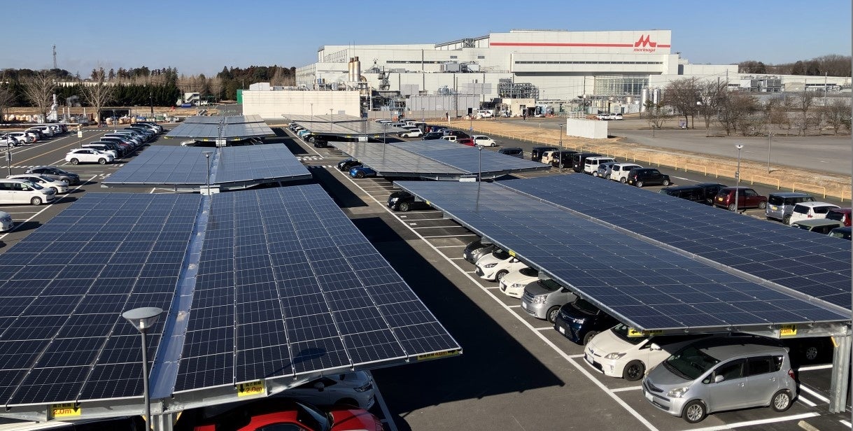森永乳業は、再生可能エネルギーを活用したGHG削減の取組みの一環として、利根工場に新たに発電容量が約500kWのカーポート型太陽光発電設備を増設し、このたび稼働を開始しました。すでに設置されている600kWの設備と合わせて、発電容量が約1,100kWとなり、森永乳業グループとして初のメガソーラーが誕生しました。既存設備を含む利根工場全体で、CO2排出量が年間約570t削減されることを見込んでいます。