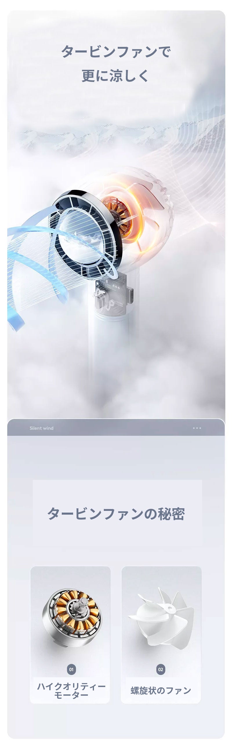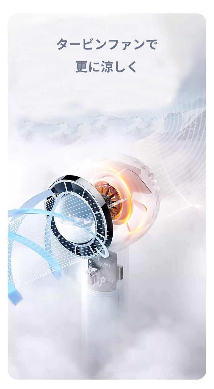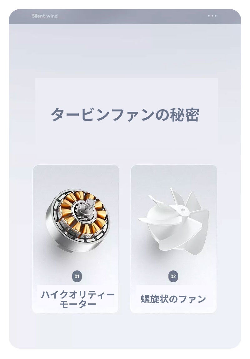 - 飛行機タービン式ファンで、従来の小型扇風機の3倍の風力
