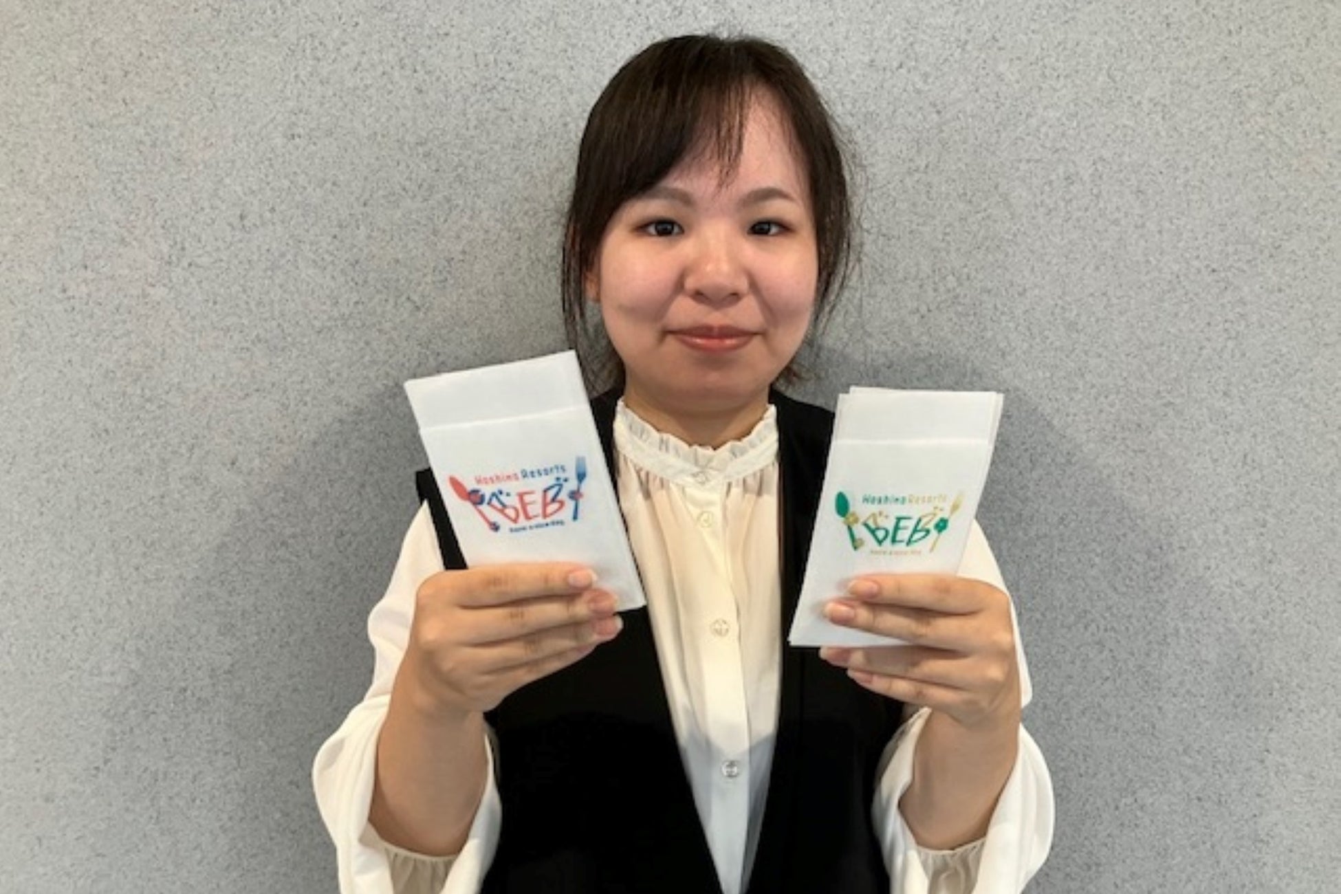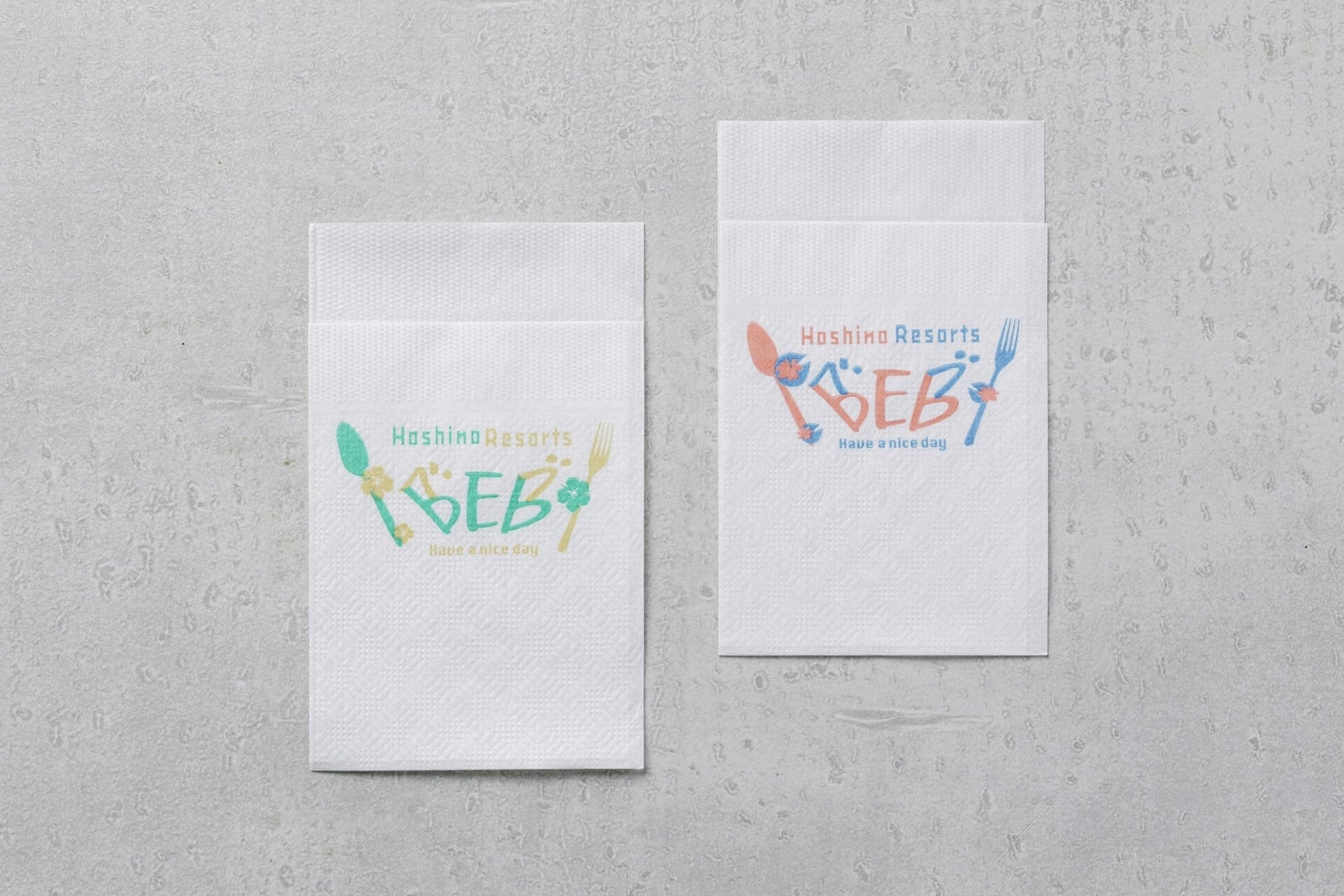 BEBのフレンドリーな雰囲気と周りの自然を大切にしている施設をイメージして制作しました。食事中に紙ナプキンのメッセージを見て、泊まりに来てくれた方が1日を楽しく過ごせるように思いを込めています。紙ナプキンは朝食以外にも使用する用途が多いので、たくさんのお客様にBEBブランドを認知していただくこともできます。BEBに泊まりに来た際には、この紙ナプキンを手に取っていただけると、とても嬉しいです。