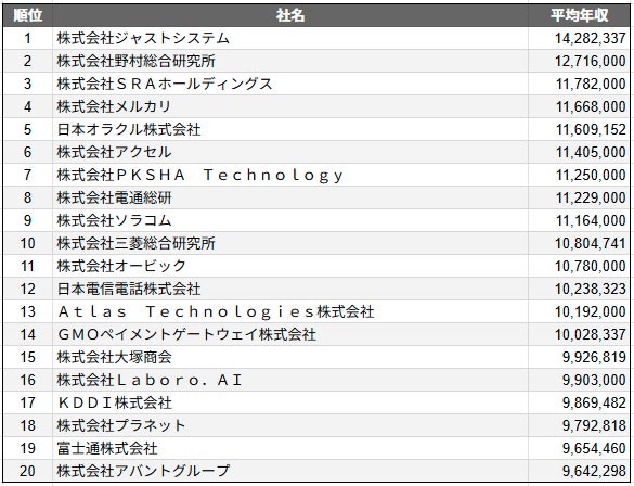 【2025年最新版】IT業界 平均年収ランキング/SalesNow DBレポート