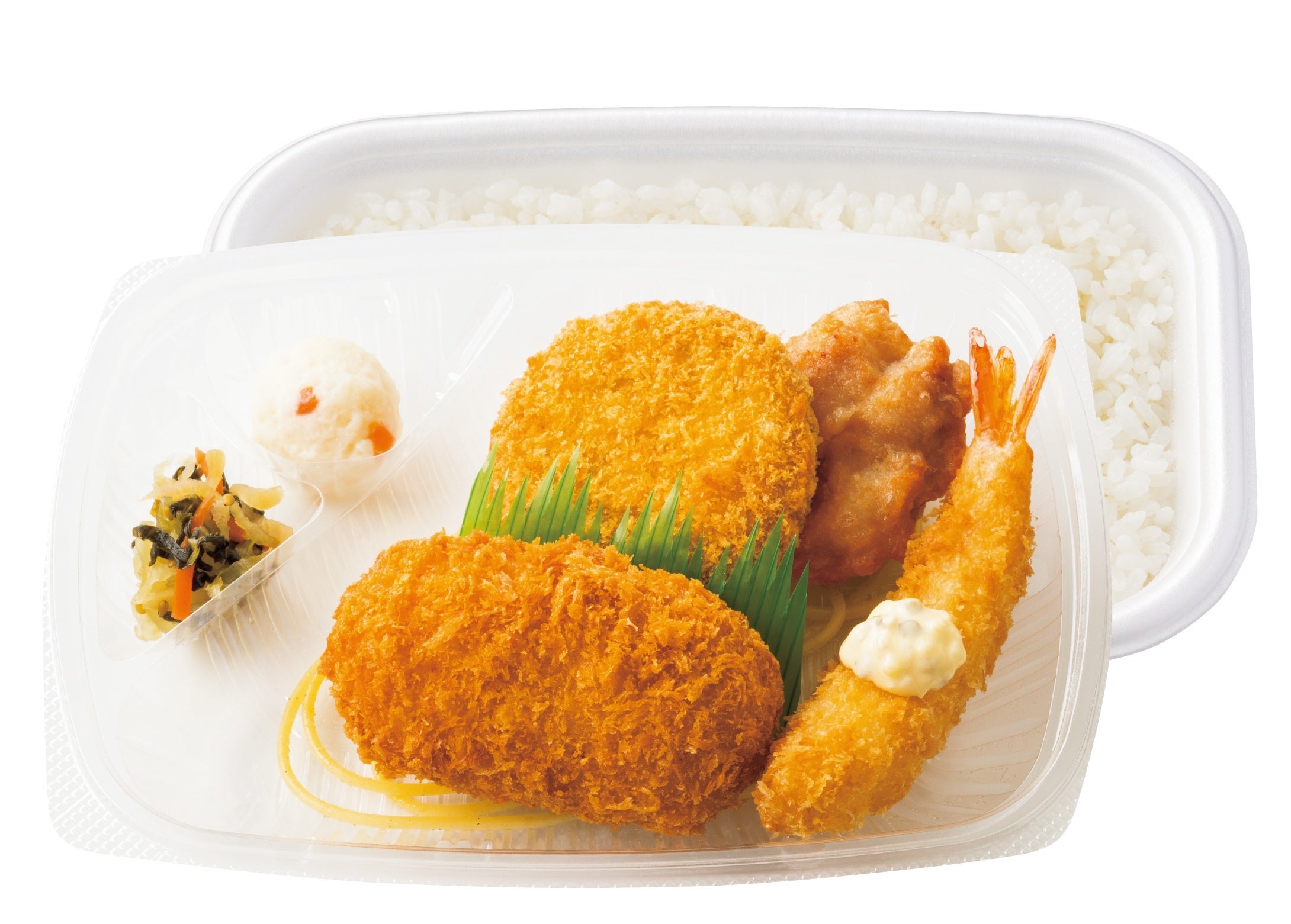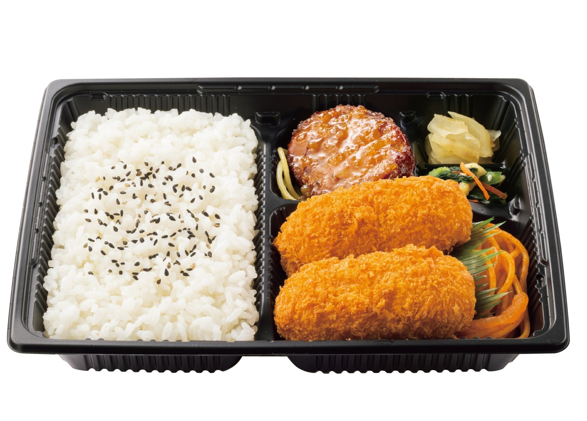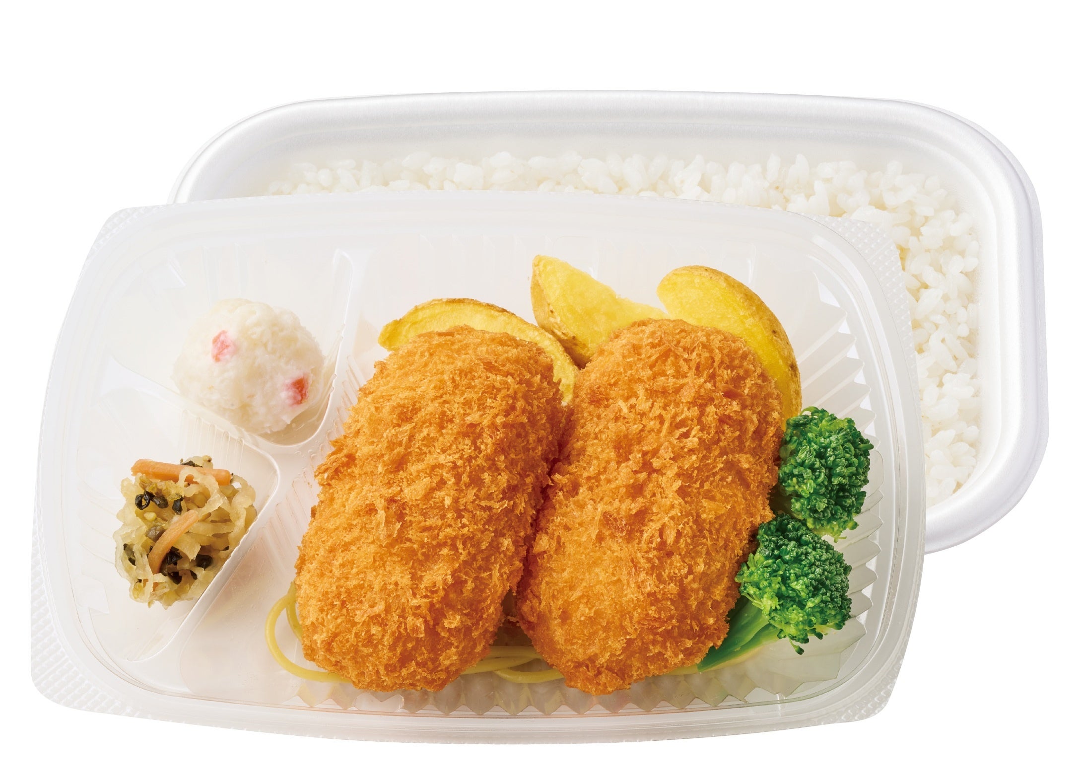 ミニハンバーグやナポリタンもセットになった『カニコロバラエティ弁当』660円や、から揚、メンチカツ、エビフライなどのおかずを楽しめる『カニコロミックス弁当』690円、豪華洋食コンビの『カニコロ&デミグラスハンバーグ弁当』 820円も取り揃えております。「カニクリームコロッケ」は単品での販売も行っているため、お好きなお弁当とぜひ一緒にお楽しみください。