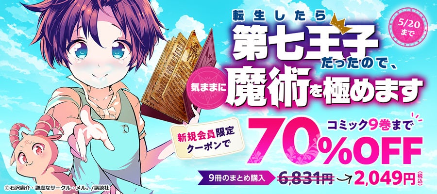 ■新規会員限定クーポンで『転生したら第七王子だったので、気ままに魔術を極めます』(マンガ版)1~9巻が70%OFF