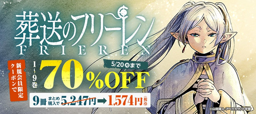 ■新規会員限定クーポンで『葬送のフリーレン』1~9巻が70%OFF