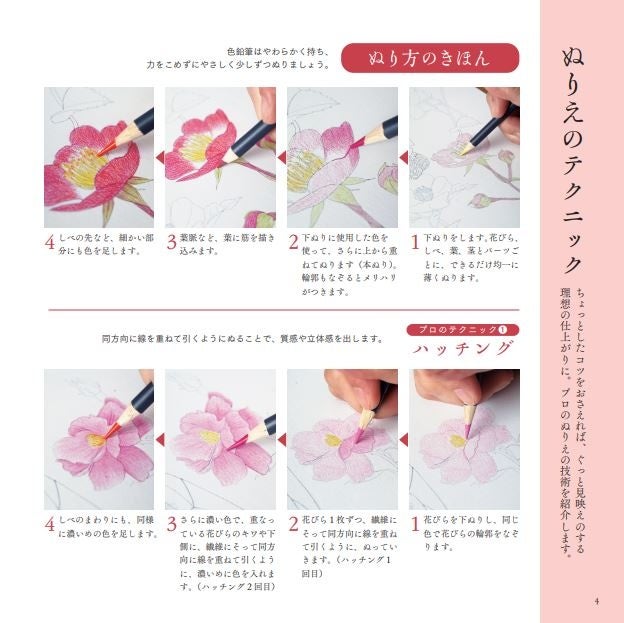 ◆工夫その1)色鉛筆による繊細なぬり見本と「ぬりえのテクニック」解説