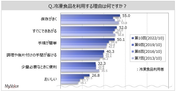 冷凍食品を利用する理由で「おいしい」が増加傾向