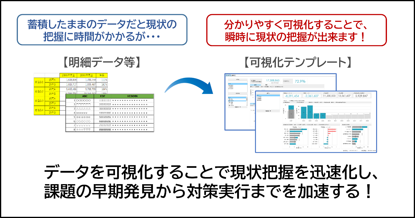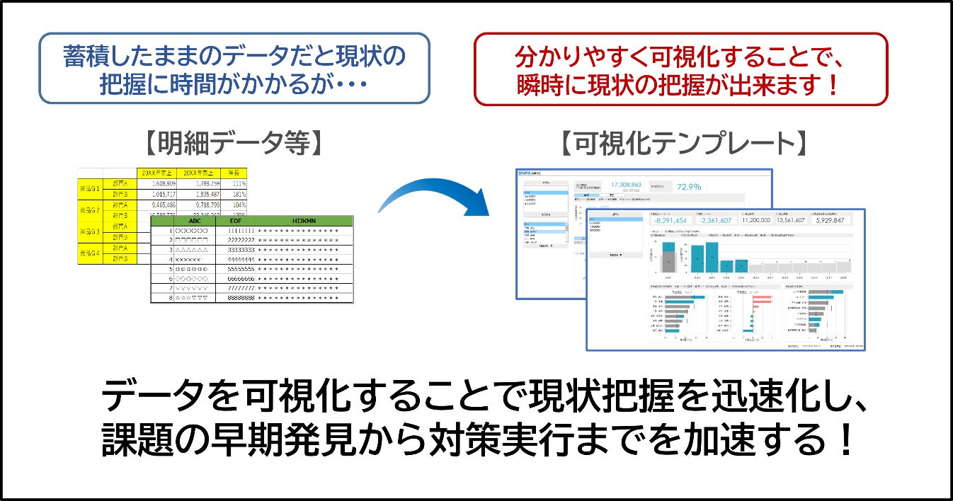 一方で、データは蓄積されているものの、集計や資料作成に手間がかかり、状況把握が遅れることで、経営や業務改善に活かしきれていないという課題が生じています。