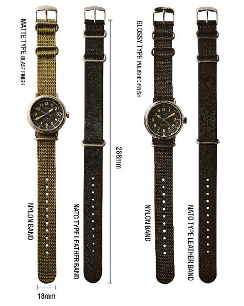 本革NATOストラップに加え、ナイロン製の引き通しストラップが付属されており、クラシックと実用性が融合した、50周年記念の特別仕様となっています。