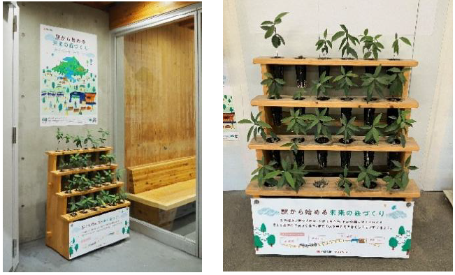 苗木を育てることで森林資源の循環を促進するため、ソマノベースが手掛ける「戻り苗」の仕組みを活用した池上線の4駅での育苗の取り組みにおいて共創しています。駅でどんぐりから苗木を育てることを通じて、“木にいいこと”を知って・応援していただける機会を創出しています。