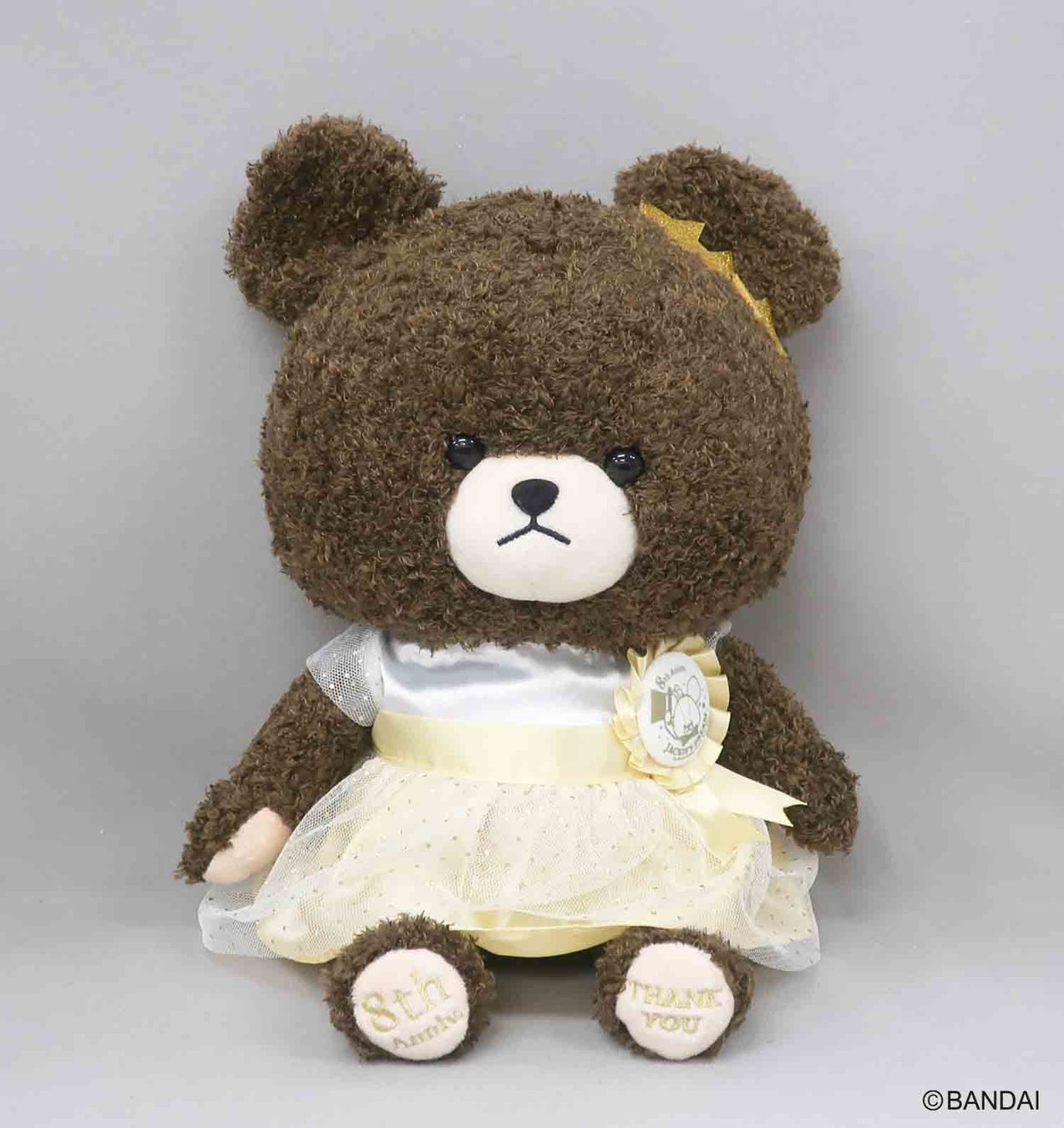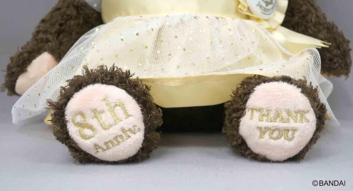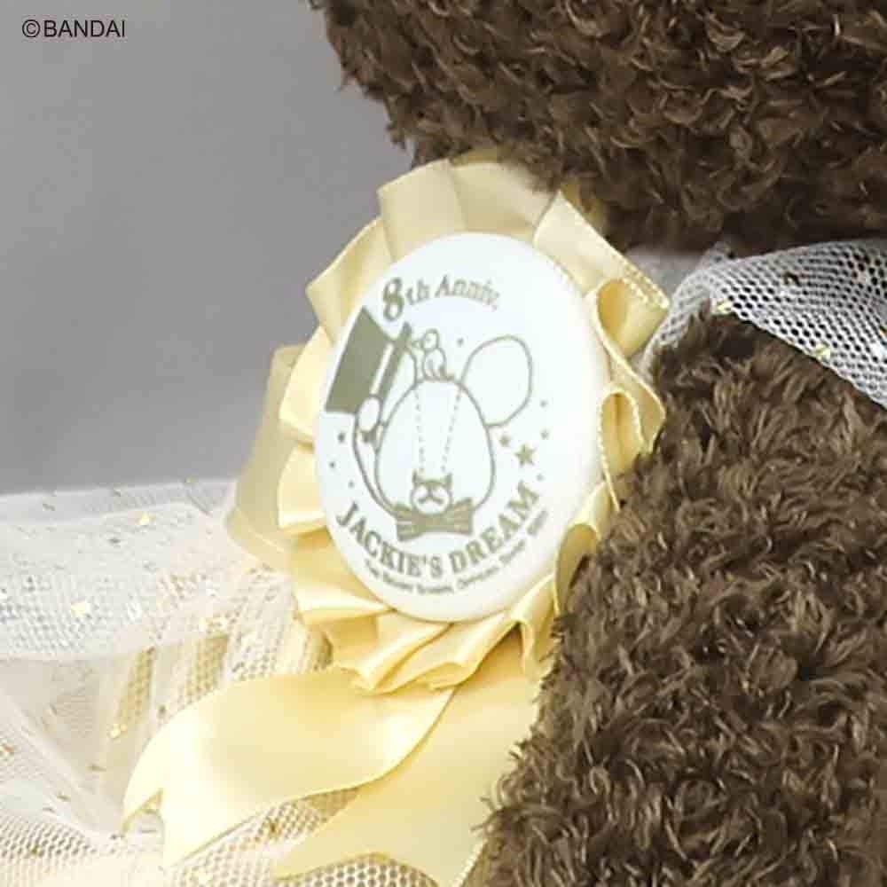 8周年を記念して、ゴールドの水玉柄チュールドレスをまとったジャッキーのぬいぐるみが登場します。