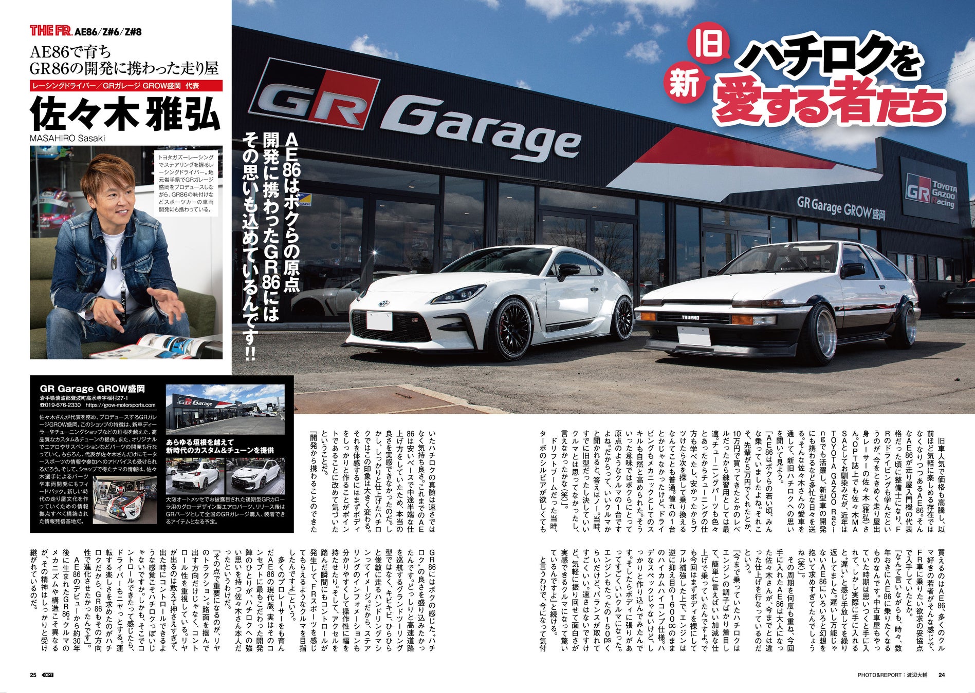 往年のAE86を愛するのはもちろん、Z♯6やZ♯8の最新86の魅力についても存分に語れる。そんな新旧ハチロクを愛する二人の男をフィーチャー。今を時めくレーシングドライバーにしてGR86の開発に携わった佐々木雅弘さん。そして、新鋭エアロブランド「XENO JAPAN」を立ち上げてGR86にオリジナルスタイリングを注入した古川敬介さんだ。