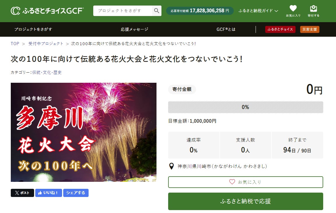 川崎市は、歴史のある花火大会の伝統を途絶えさせず、これからも地域に根付き地域を活性化させるイベントとして継続し、これからも皆様に花火大会を楽しんでいただけるよう、GCF®で支援を募ります。