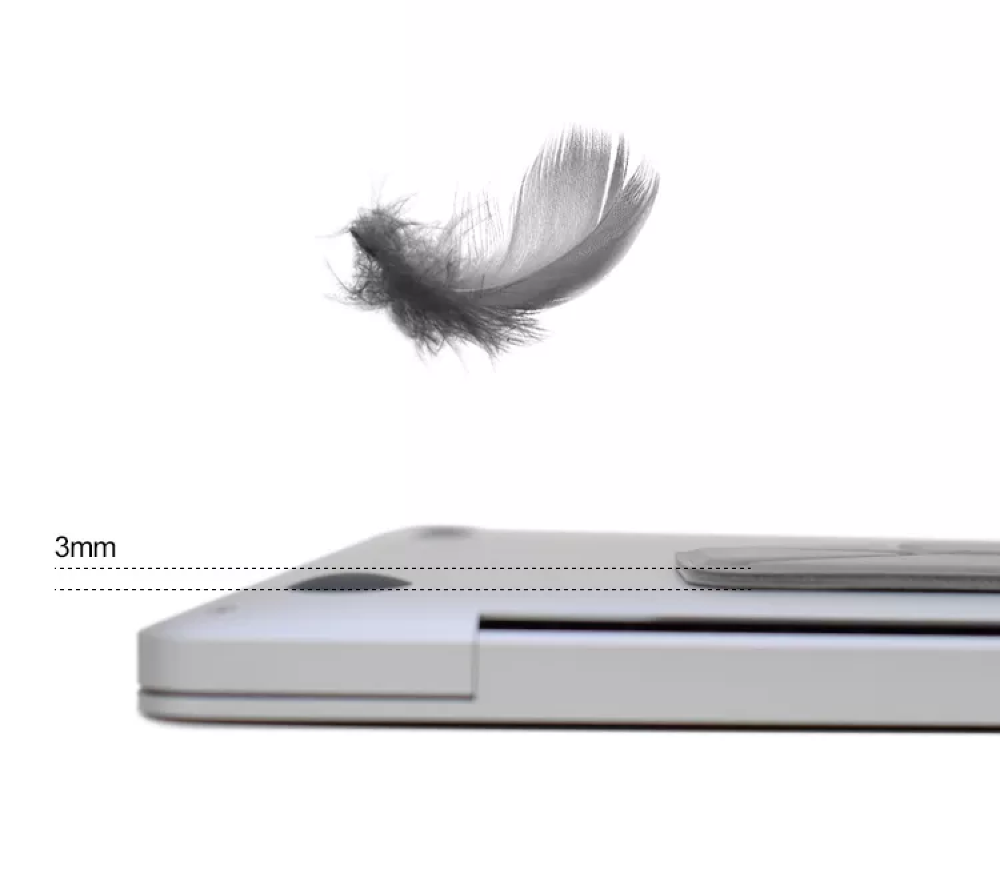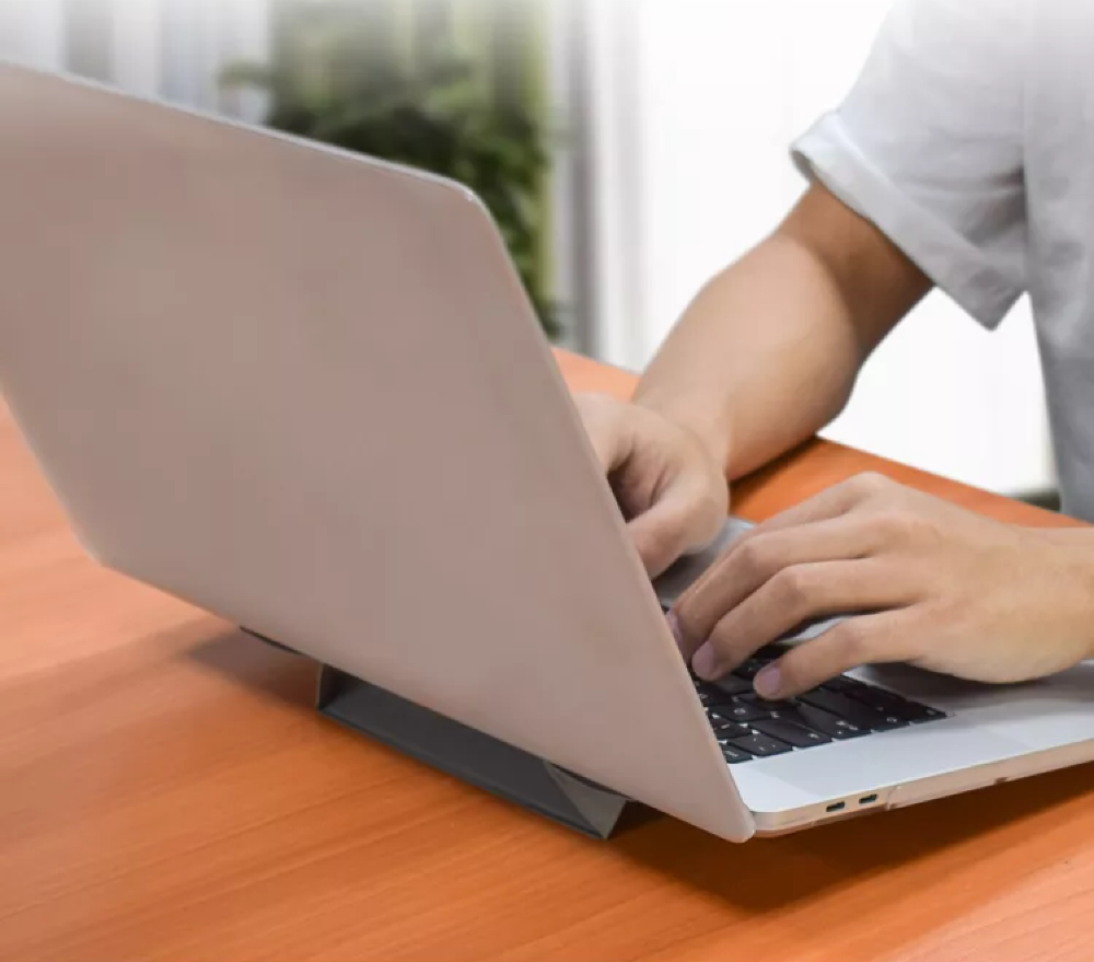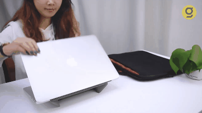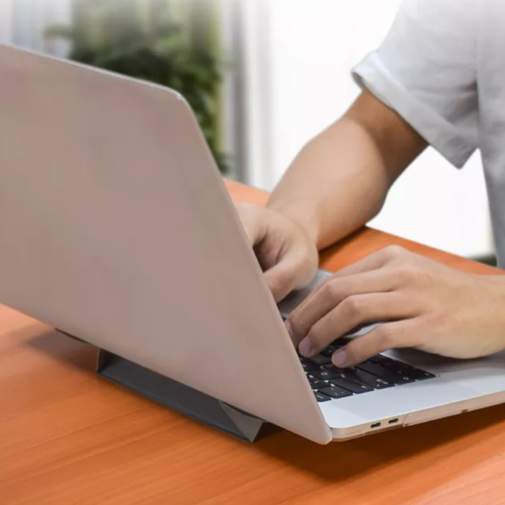 GeeHeel(ジーヒール)は、コンパクトデザインで、オフィスやカフェなど外出先でもタイピングがしやすい角度で、姿勢が良く快適な操作を行うことができます。使用しない時は、スタンドを閉じればフルフラットになり、いつものPCスリーブにもすっぽり入ります。必要なときにすぐ組み立てて使用できるのでとても便利です。
