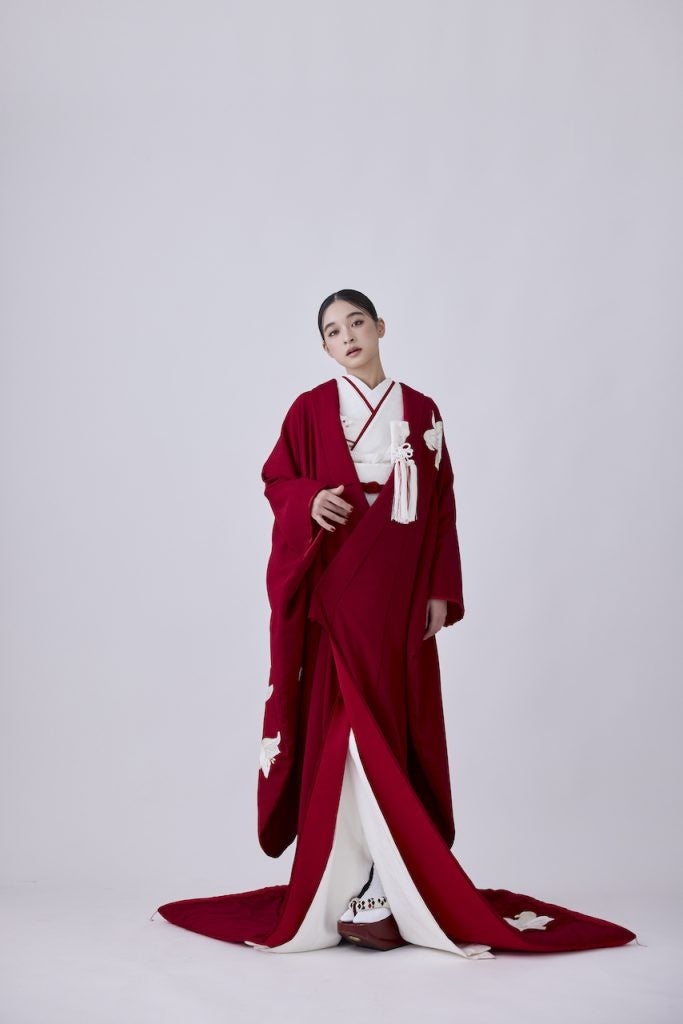 掛下もシンプルに王道な白を合わせ、赤無垢の上品さを崩さずより洗練さを極めて。