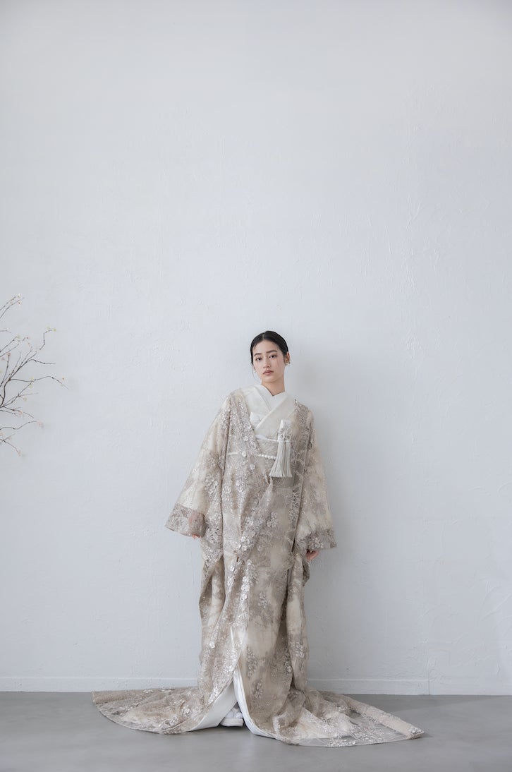 あえて柄を最小限に抑えて、より洗練された上品な印象に。唯一無二のaimオリジナル和装です。