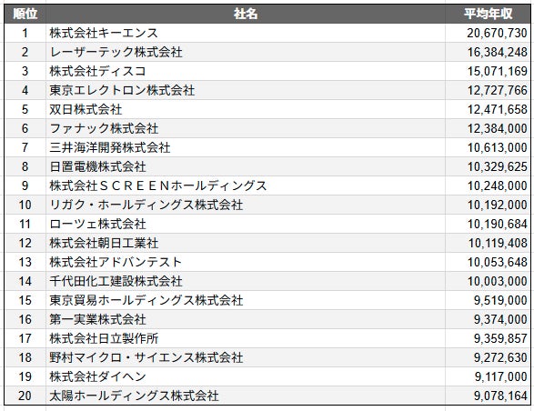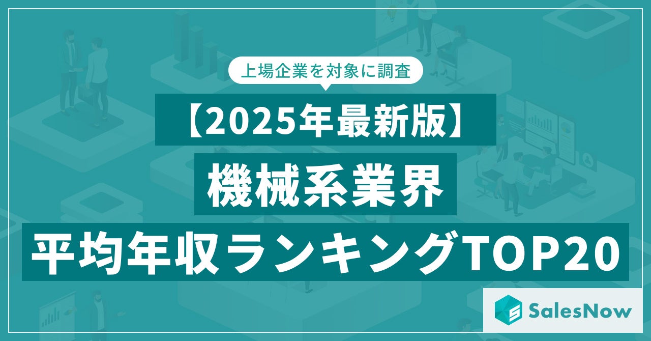 株式会社SalesNow(本社:東京都渋谷区、代表取締役:村岡功規、以下「当社」)は、国内540万社の企業情報を完全網羅した日本最大級のデータベース「SalesNow DB」より、上場企業における機械系業界の平均年収ランキングTOP20をお知らせします。