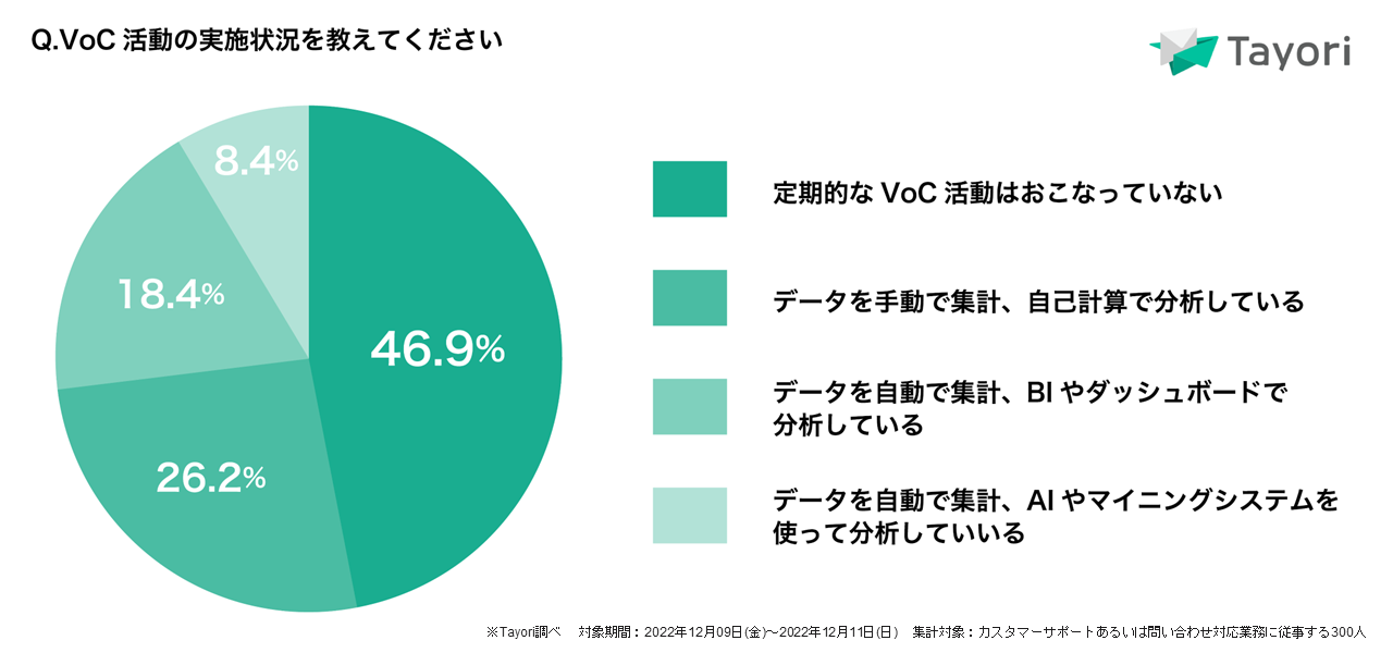 - VoC(ユーザーの声を活かす活動)は53.1%が実施も個人やチーム内で活用に限定。