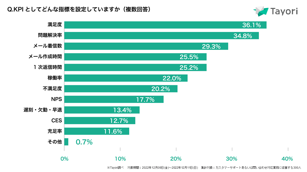 カスタマーサポート従事者を対象とした当調査によって、問い合わせ対応がサービスや事業において重要であることを示しつつ、カスタマーサポート従事者が抱える課題や今後の展望をどう捉えているかを分析することを目的に中小企業から大企業の新規事業など広く問い合わせ対応を支援する「Tayori」が実施いたしました。今後も定期的に調査・分析を行っていきたいと考えています。カスタマーサポートツール「Tayori」について https://tayori.com/