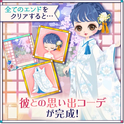 板垣退助・続編の「誓い愛エンド」をクリアすると、"永遠の愛を誓う水色の白無垢"をプレゼント!さらに「誓い愛エンド」「繋ぐ絆エンド」の両エンドをクリアすると“彼との思い出コーデ”が完成!