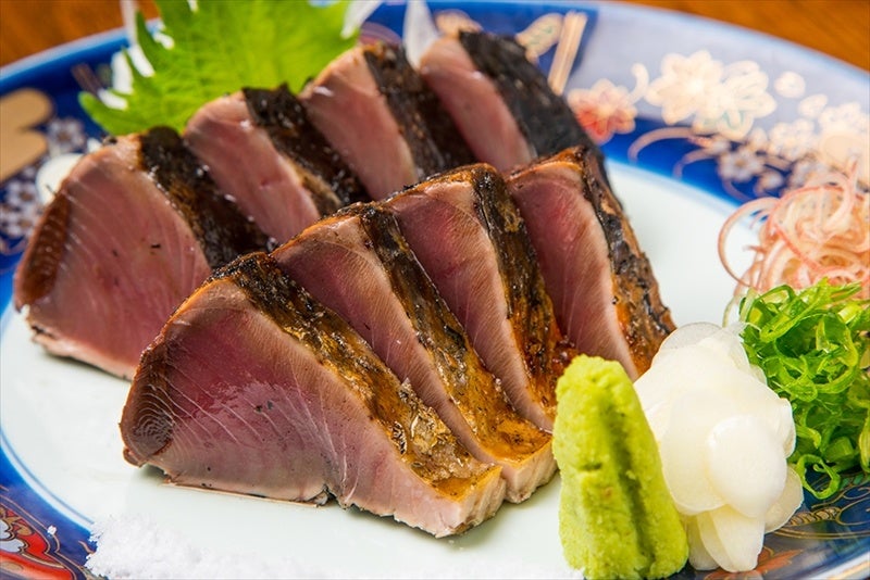 ″最高の調理法″と言われている土佐名物「わら焼き」は、燃え上がるわらの強い炎で、一気に食材を焼き上げるのでムラがなく、わらが燃える際に発生する煙や香りで、素材の旨味を一層引き立てます。