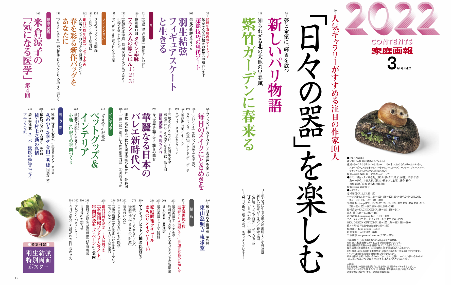 <独占メッセージ>羽生結弦 選手 北京五輪にかける想い/「日々の器」を楽しむ/「新しいパリ物語」など 創刊65周年記念号『家庭画報3月号』発売