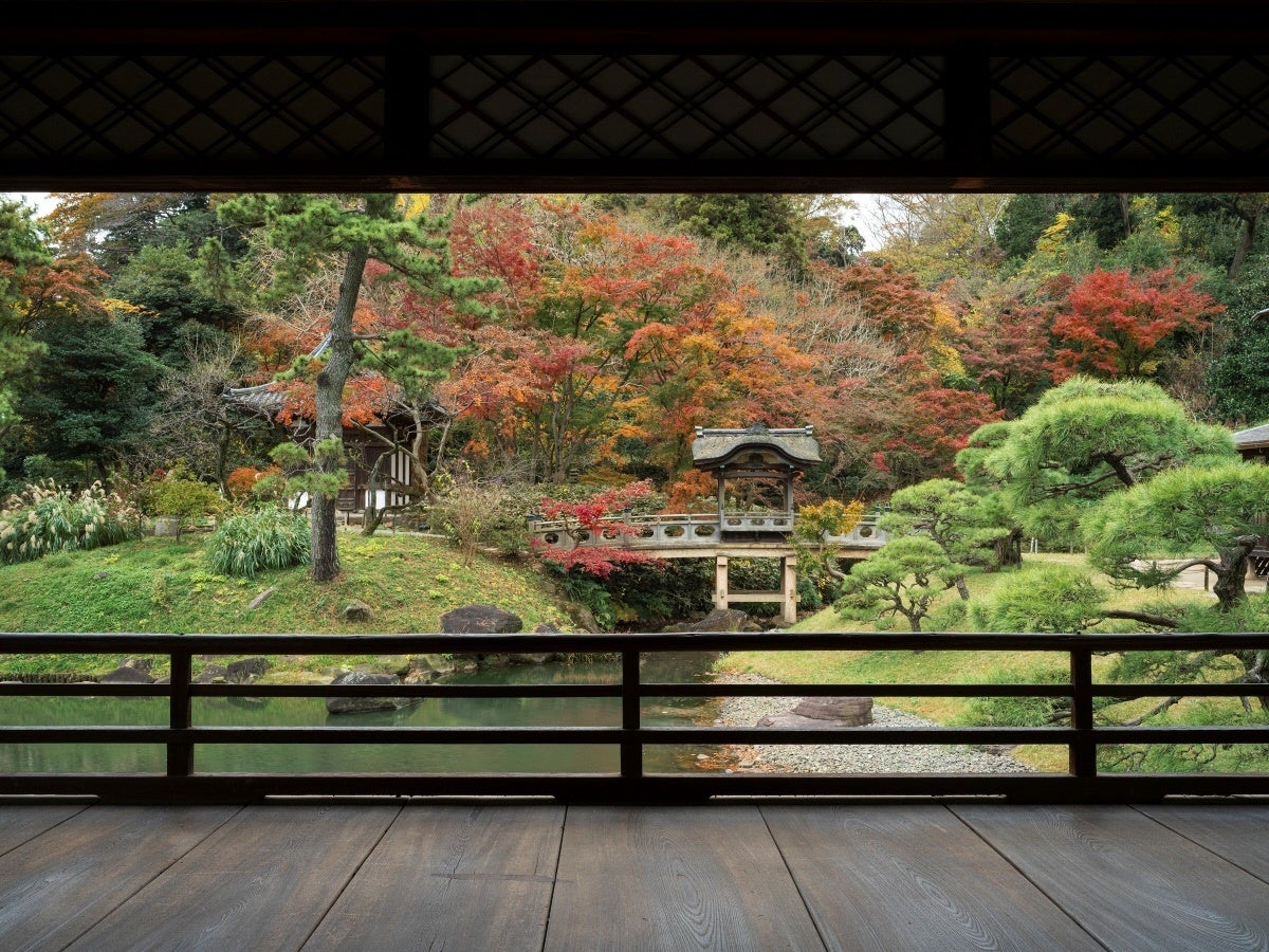 数寄屋の名建築から眺める鮮やかな紅葉は息をのむ美しさ。