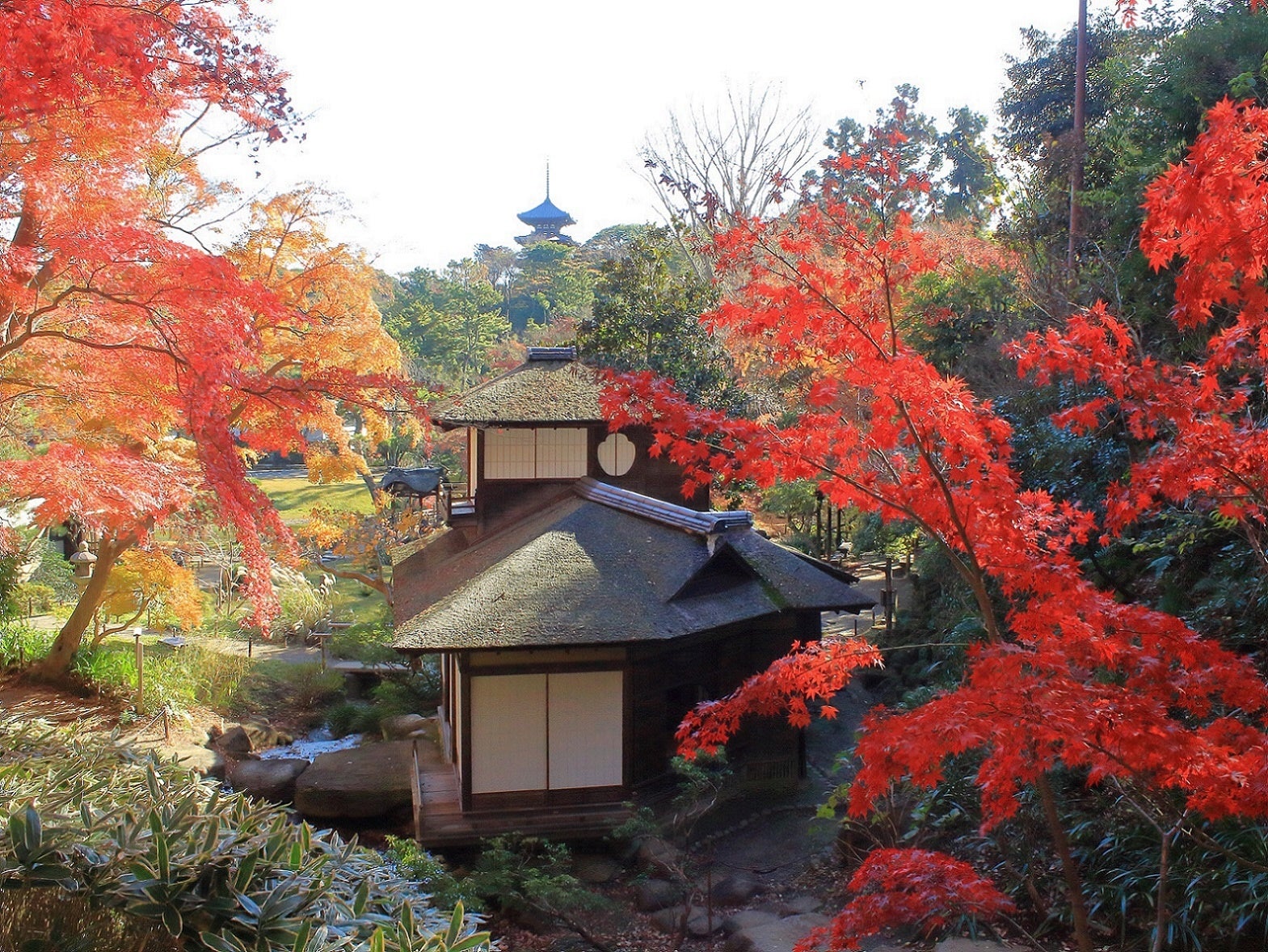 創設者・原三溪の理想が最も凝縮された内苑は、重要文化財建造物と自然風景が見事に調和した園内随一の紅葉スポットです。
