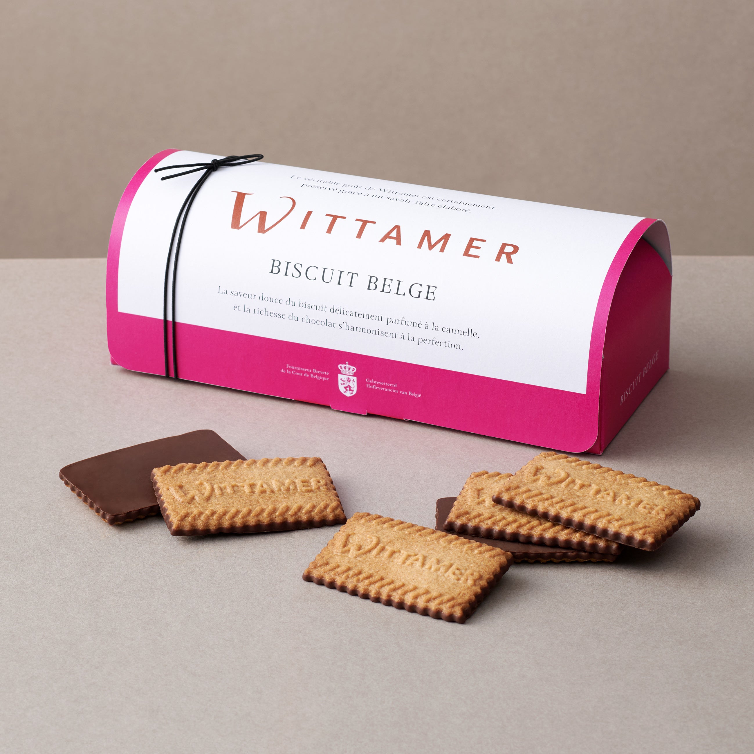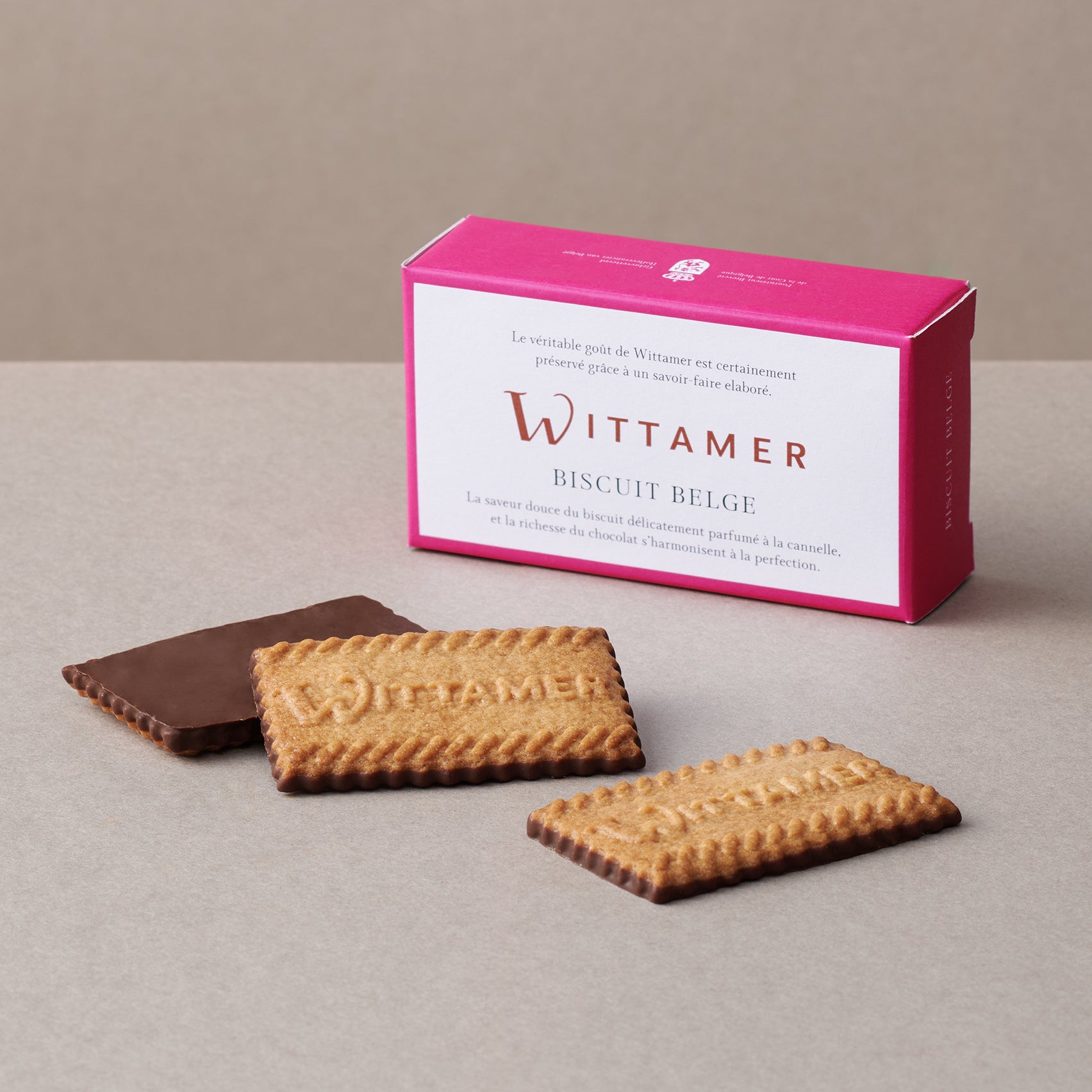 WITTAMERの文字が型押しされたザクザク食感のクッキーは、ベルギーの伝統的なクッキー“スペキュロス”をイメージした、シナモンが優しく香るクッキー。そこに、カカオの風味が広がるマイルドビターにブレンドしたチョコレートを合わせて。味わい豊かなクッキーとチョコレートのハーモニーをお楽しみいただけます。