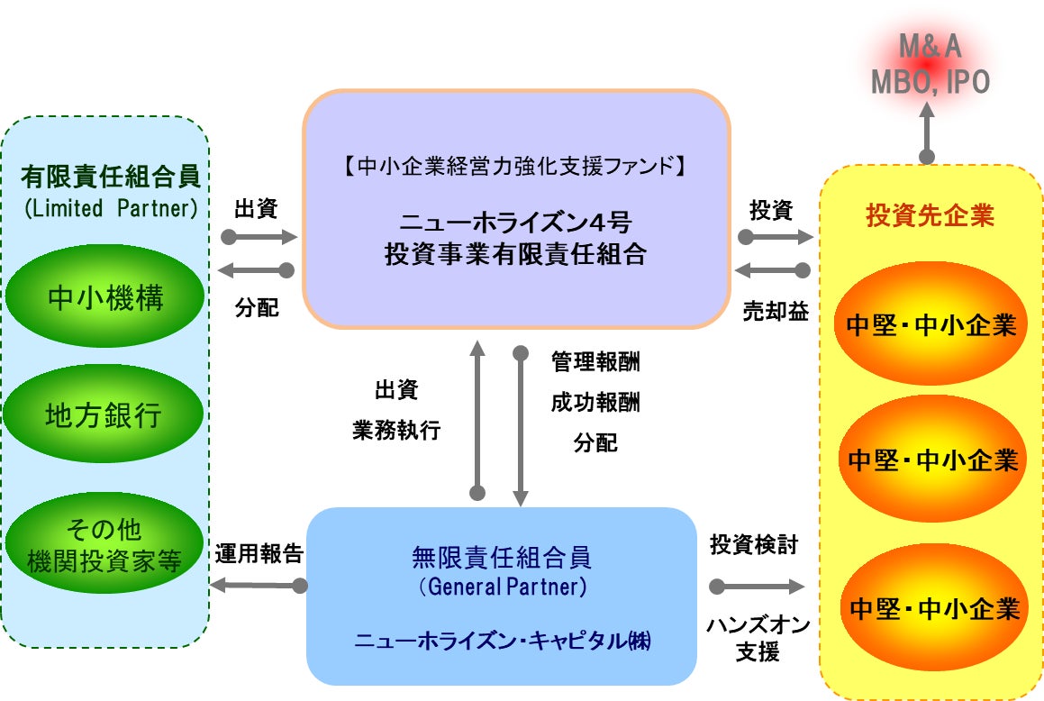独立行政法人中小企業基盤整備機構(理事長:豊永厚志 本部:東京都港区)は、中小企業経営力強化支援ファンド出資事業において、ニューホライズンキャピタル株式会社が運営する「ニューホライズン4号投資事業有限責任組合」に対し80億円の出資決定を行い、組合契約を締結しました。