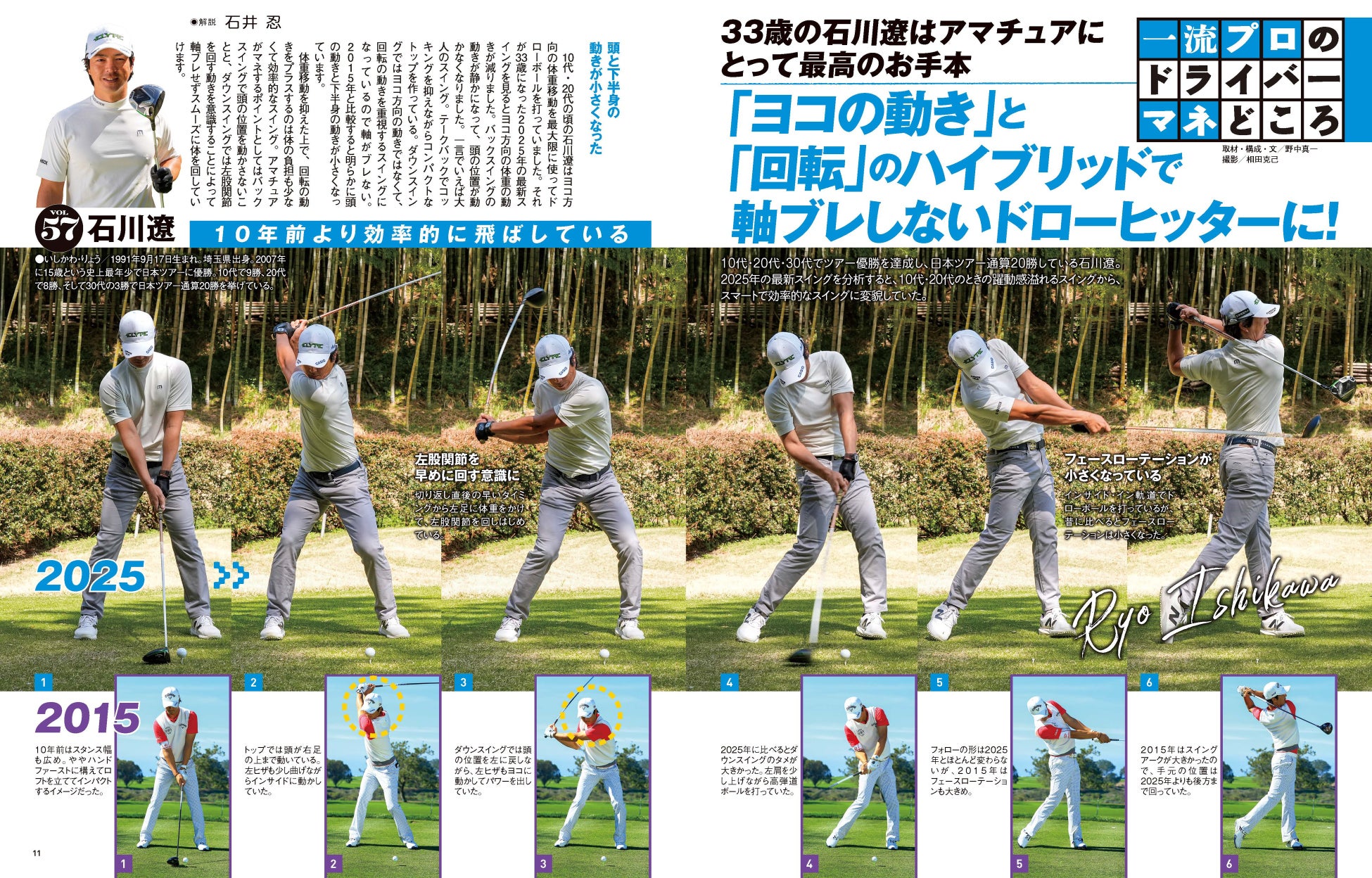 表紙を飾った石川遼プロは巻頭の連続写真で登場!より高みを目指して取り組んできたスイング改造もいよいよ完成形に近づいた?ショートトップのスイングを石井忍プロコーチが解説!