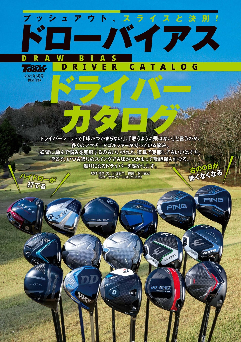 そしてもうひとつの綴込み付録は「絶対にスライス」しないドローバイアスのドライバー特集。あの嫌なスライスを防ぎ、ボールがつかまり飛距離が伸びるモデルを試打を交えて紹介。クラブでドローが打てるかも?